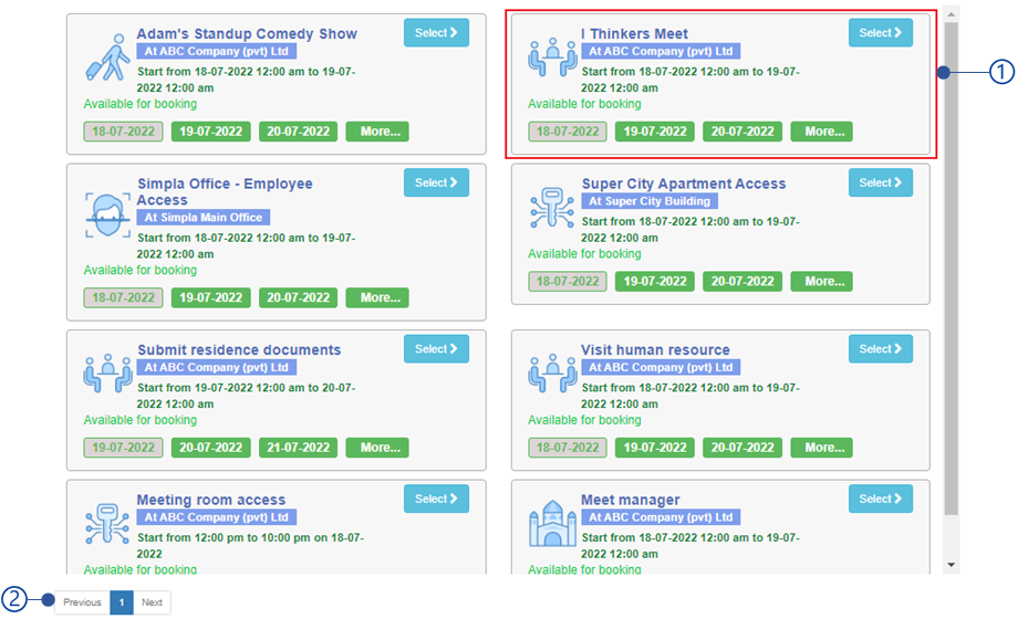 When the Slot time is greater than 0 when creating schedules as mentioned in Add/edit visitor schedules section, the time slots are available to select when creating appointment as below.