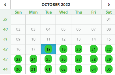 Appointments date view shows the dates allows to book appointments. If the schedule is a single appointment schedule, this allows to select appointment date. If schedule Is a session appointment schedule, this allows to select the period appointments should be created.