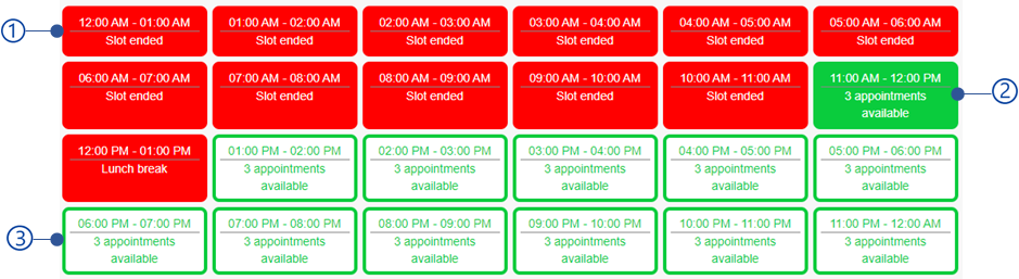 This applies if the Slot occupancy is greater than 0. Slot is unavailable if the number of appointments for the slot is equals to Slot occupancy