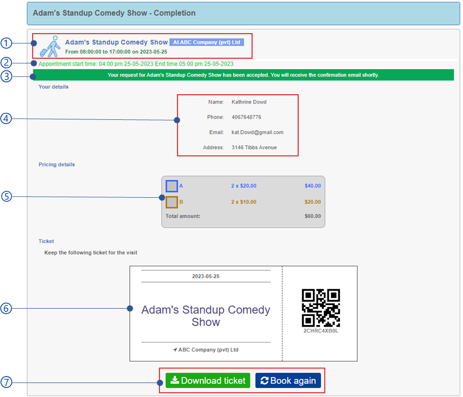 Download ticket button appears in the booking page to download the ticket if Allow visitors to download pass setting is disabled in the schedule.